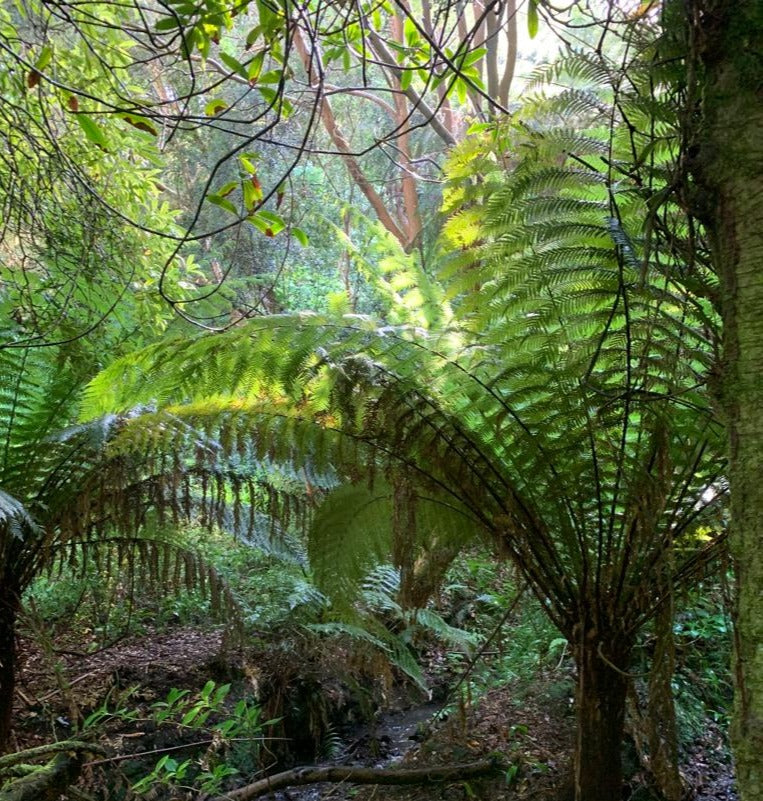 As the paths descend into the shade of the canopy of the larger trees, groups of the ancient and impressive tree fern appear. Thought to have originally come to the garden in the 1800s on ships from Australia, they have a tree-like trunk and feathery fronds up to 3m long. Many of us aspire to have one of these in our garden, Trebah have them in abundance! Found on Stuart Hill, Musa basjoo, or ‘Japanese Banana’, is another exotic foliage to be spotted amongst the tropical evergreens. It is the large paddle-shaped leaves that make up a huge part of the dense canopy.